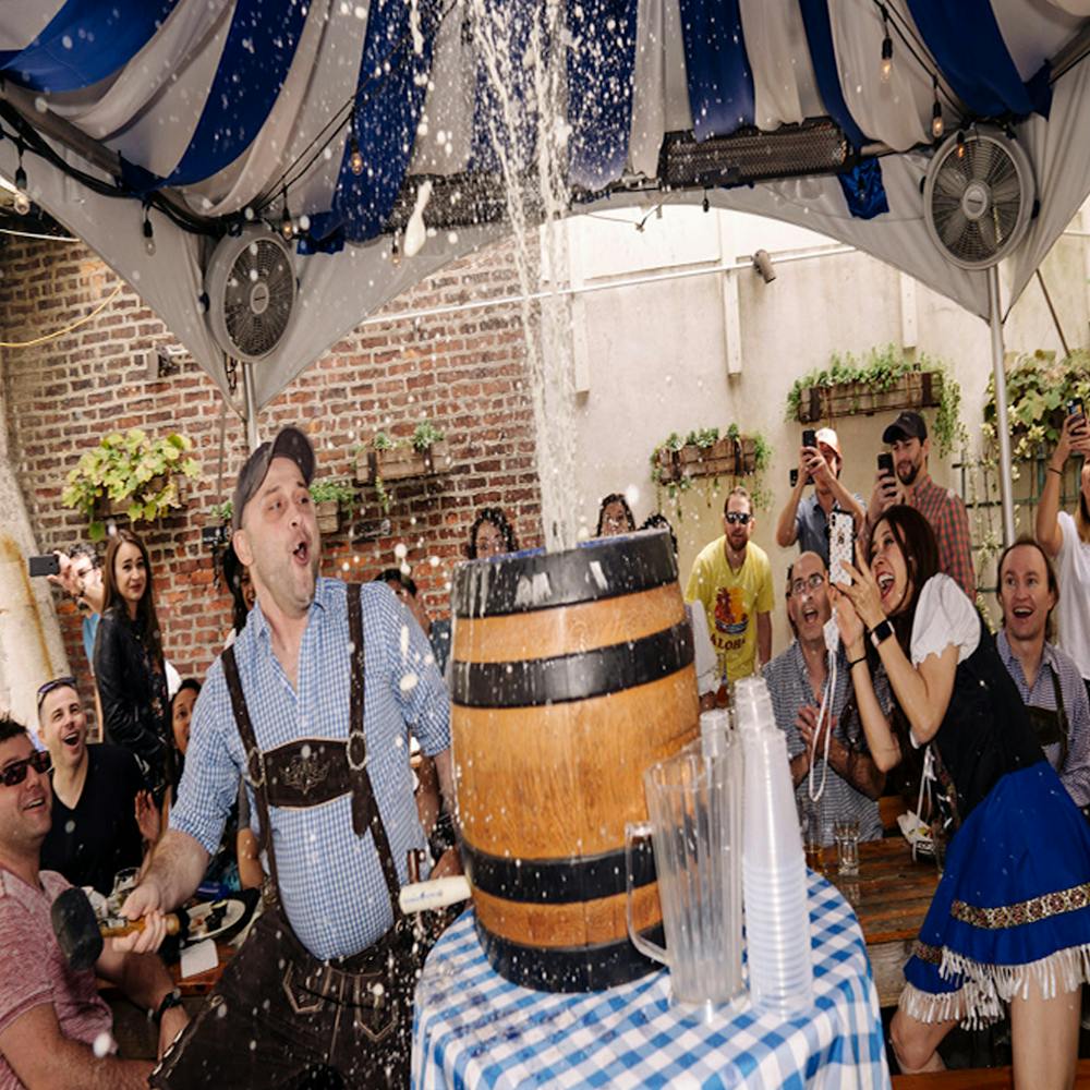 Rotating Oktoberfest Craft Beers, Soft Baked German Pretzels, Seasonal Craft Ciders & Warm Ciders, 1 Liter Steins & 1 Liter Boots, Weekly Pig Roasts & Keg Tappings, Seasonal Wine List, Sangria & Frozen Cocktails, Seasonal Cocktails, 12 Different Kinds of Sausages & more!